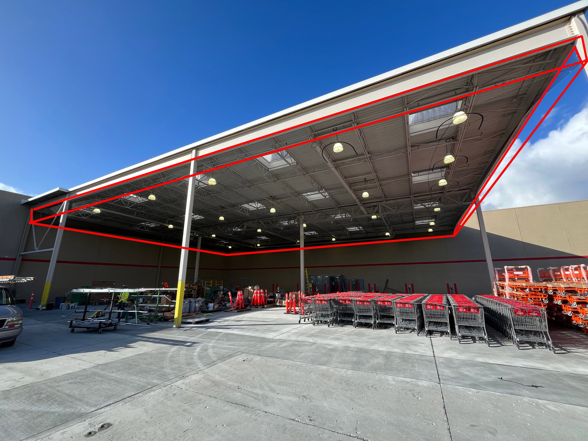 - Active Infestation: Upon initial inspection, it was noted that before Costco even took full possession of the facility, pigeons had already established roosts in two of the three large undercover areas. They were nesting deep within the roof steel rafters and wall bracing, creating an immediate sanitation and construction hazard.